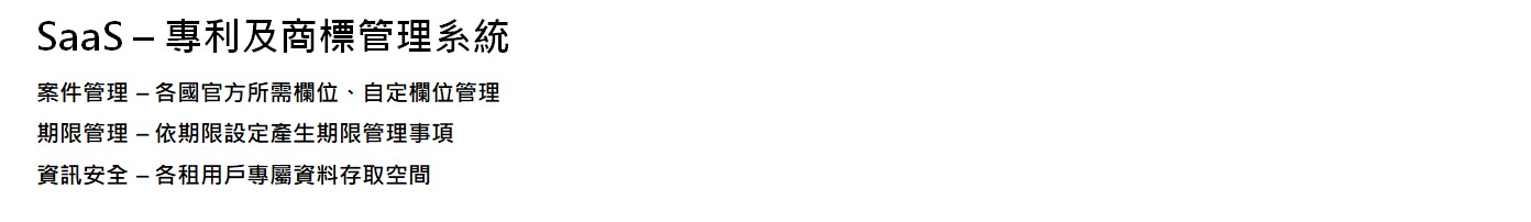 提供各類型客戶所需的智慧財產權管理解決方案。